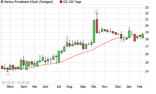 Mit dem Anstieg auf 18,90 EUR hat die Merkur Bank-Aktie am 03.02.2026 die 100-Tage-Linie nach oben gekreuzt.