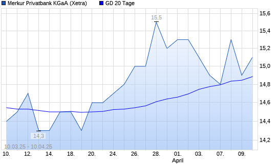 Mit dem Anstieg auf 14,70 EUR hat die Merkur Bank-Aktie am 09.04.2025 die 20-Tage-Linie nach oben gekreuzt.