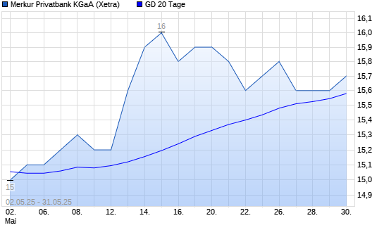 Mit dem Anstieg auf 15,40 EUR hat die Merkur Bank-Aktie am 30.05.2025 die 20-Tage-Linie nach oben gekreuzt.