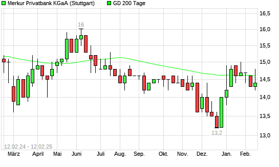 Mit dem Anstieg auf 14,80 EUR hat die Merkur Bank-Aktie am 11.02.2025 die 200-Tage-Linie nach oben gekreuzt.