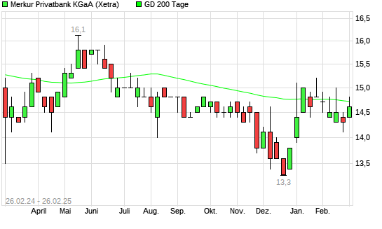 Mit dem Anstieg auf 14,60 EUR hat die Merkur Bank-Aktie am 25.02.2025 die 200-Tage-Linie nach oben gekreuzt.
