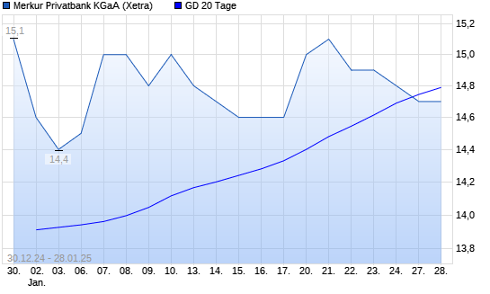 Mit dem Rücksetzer auf 14,70 EUR hat die Merkur Bank-Aktie am 27.01.2025 die 20-Tage-Linie nach unten gekreuzt.