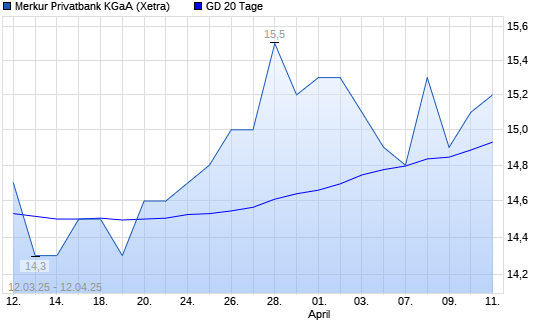 Mit dem Rücksetzer auf 14,60 EUR hat die Merkur Bank-Aktie am 11.04.2025 die 20-Tage-Linie nach unten gekreuzt.