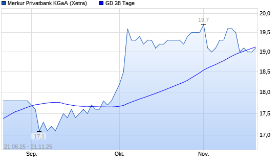 Mit dem Rücksetzer auf 19,10 EUR hat die Merkur Bank-Aktie am 20.11.2025 die 38-Tage-Linie nach unten gekreuzt.