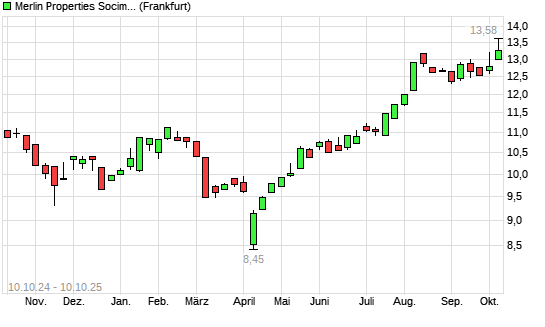 Mit dem Anstieg auf 13,58 EUR hat die Merlin Properties Socimi-Aktie (ISIN ES0105025003) am 09.10.2025 ein neues All-Time-High erreicht und damit den Kurs vom 19.11.2019 eingestellt.