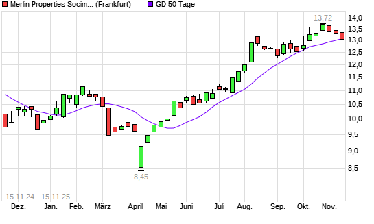 Mit dem Rücksetzer auf 13,04 EUR hat die Merlin Properties Socimi-Aktie am 14.11.2025 die 50-Tage-Linie nach unten gekreuzt.