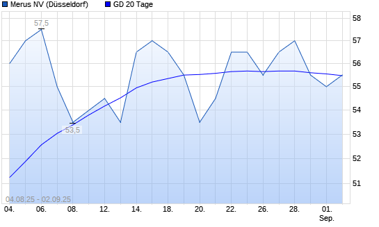 Mit dem Rücksetzer auf 55,00 EUR hat die Merus-Aktie am 01.09.2025 die 20-Tage-Linie nach unten gekreuzt.