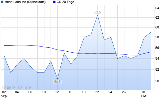 Mit dem Anstieg auf 56,00 EUR hat die Mesa Laboratories-Aktie am 01.10.2025 die 20-Tage-Linie nach oben gekreuzt.