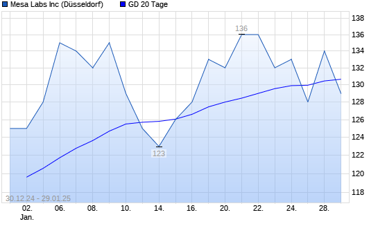 Mit dem Rücksetzer auf 132,00 EUR hat die Mesa Laboratories-Aktie am 28.01.2025 die 20-Tage-Linie nach unten gekreuzt.