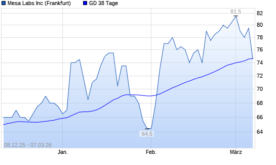 Mit dem Rücksetzer auf 74,50 EUR hat die Mesa Laboratories-Aktie am 06.03.2026 die 38-Tage-Linie nach unten gekreuzt.