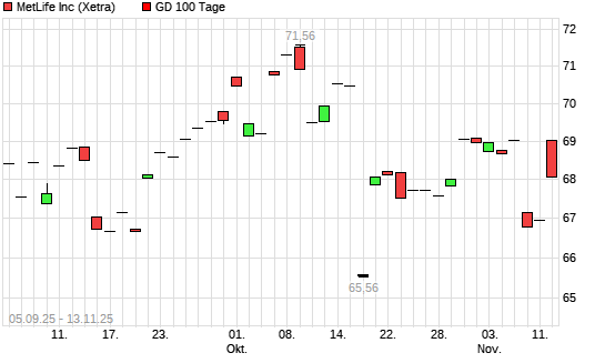 Mit dem Anstieg auf 69,15 EUR hat die MetLife-Aktie am 12.11.2025 die 100-Tage-Linie nach oben gekreuzt.