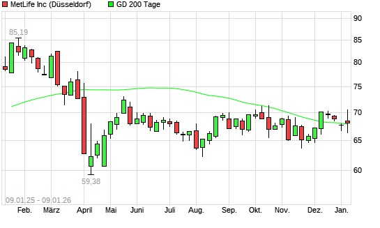 Mit dem Anstieg auf 68,37 EUR hat die MetLife-Aktie am 08.01.2026 die 200-Tage-Linie nach oben gekreuzt.