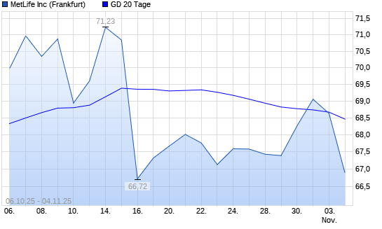 Mit dem Rücksetzer auf 68,63 EUR hat die MetLife-Aktie am 03.11.2025 die 20-Tage-Linie nach unten gekreuzt.