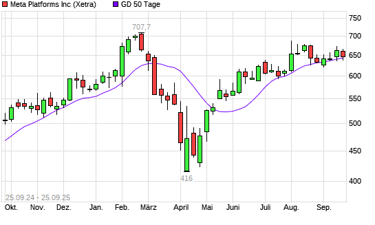Mit dem Anstieg auf 646,50 EUR hat die Meta Platforms (ex Facebook)-Aktie am 24.09.2025 die 50-Tage-Linie nach oben gekreuzt.