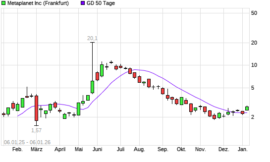 Mit dem Anstieg auf 2,68 EUR hat die Metaplanet-Aktie am 05.01.2026 die 50-Tage-Linie nach oben gekreuzt.