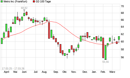 Mit dem Anstieg auf 60,20 EUR hat die Metro-Aktie am 16.03.2026 die 100-Tage-Linie nach oben gekreuzt.
