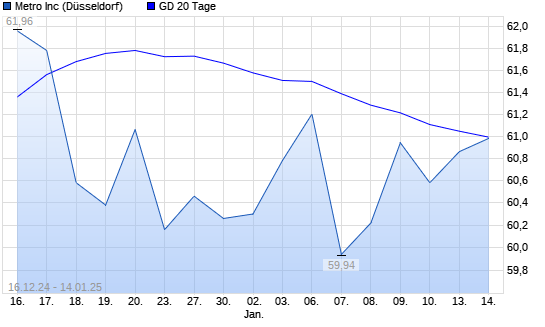 Mit dem Anstieg auf 61,16 EUR hat die Metro-Aktie am 13.01.2025 die 20-Tage-Linie nach oben gekreuzt.