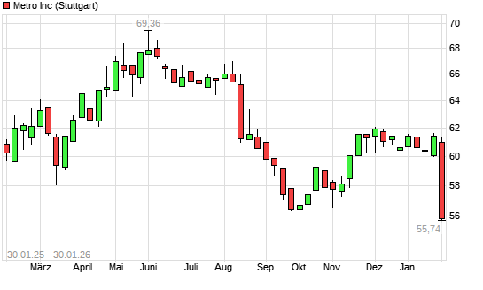 Mit dem Rücksetzer auf 55,78 EUR hat die Metro-Aktie (ISIN CA59162N1096) am 29.01.2026 ein neues 12-Monats-Tief erreicht und damit den Kurs vom 07.10.2025 eingestellt.Die Metro-Aktie befindet ...weiterlesen