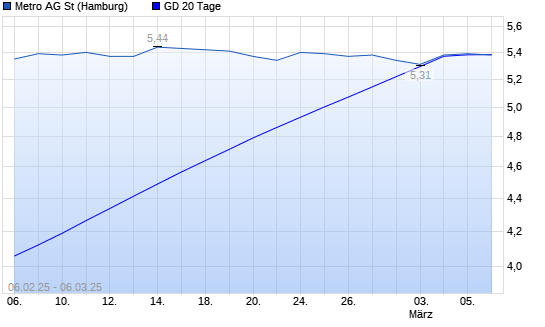 Mit dem Rücksetzer auf 5,31 EUR hat die Metro St-Aktie am 05.03.2025 die 20-Tage-Linie nach unten gekreuzt.