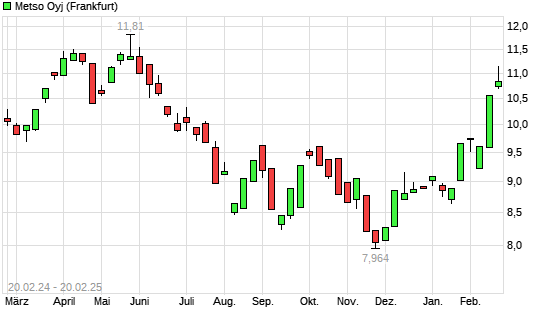 Mit dem Anstieg auf 11,14 EUR hat die Metso Outotec-Aktie (ISIN FI0009014575) am 19.02.2025 ein neues 6-Monats-Hoch erreicht und damit den Kurs vom 18.02.2025 eingestellt.