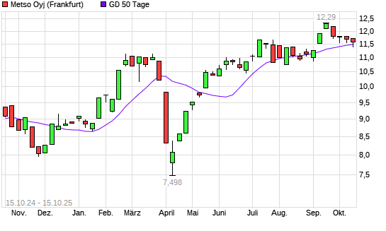 Mit dem Rücksetzer auf 11,40 EUR hat die Metso Outotec-Aktie am 14.10.2025 die 50-Tage-Linie nach unten gekreuzt.