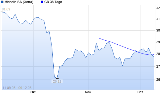 Mit dem Anstieg auf 28,03 EUR hat die Michelin-Aktie am 08.12.2025 die 38-Tage-Linie nach oben gekreuzt.