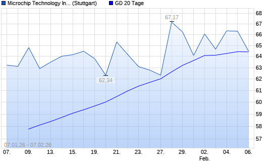 Mit dem Rücksetzer auf 64,09 EUR hat die Microchip Technology-Aktie am 06.02.2026 die 20-Tage-Linie nach unten gekreuzt.