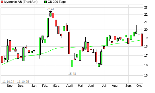 Mit dem Rücksetzer auf 17,72 EUR hat die Micronic Laser-Aktie am 10.10.2025 die 200-Tage-Linie nach unten gekreuzt.
