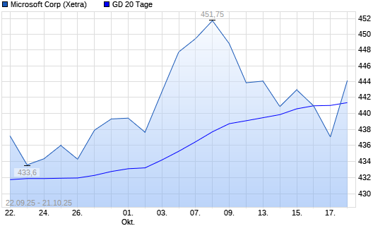 Mit dem Anstieg auf 443,05 EUR hat die Microsoft-Aktie am 20.10.2025 die 20-Tage-Linie nach oben gekreuzt.