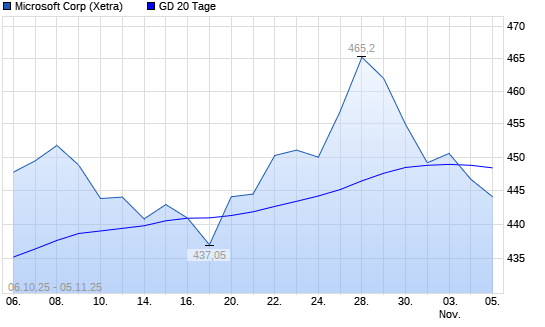 Mit dem Anstieg auf 448,20 EUR hat die Microsoft-Aktie am 04.11.2025 die 20-Tage-Linie nach oben gekreuzt.