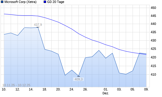 Mit dem Anstieg auf 422,70 EUR hat die Microsoft-Aktie am 09.12.2025 die 20-Tage-Linie nach oben gekreuzt.
