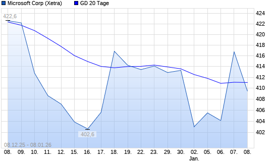 Mit dem Anstieg auf 413,90 EUR hat die Microsoft-Aktie am 07.01.2026 die 20-Tage-Linie nach oben gekreuzt.