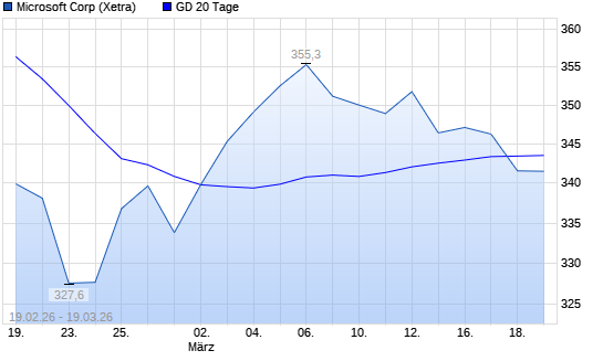 Mit dem Rücksetzer auf 341,70 EUR hat die Microsoft-Aktie am 18.03.2026 die 20-Tage-Linie nach unten gekreuzt.