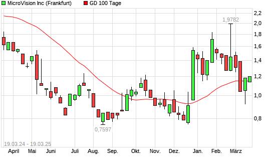 Mit dem Anstieg auf 1,18 EUR hat die Microvision-Aktie am 18.03.2025 die 100-Tage-Linie nach oben gekreuzt.