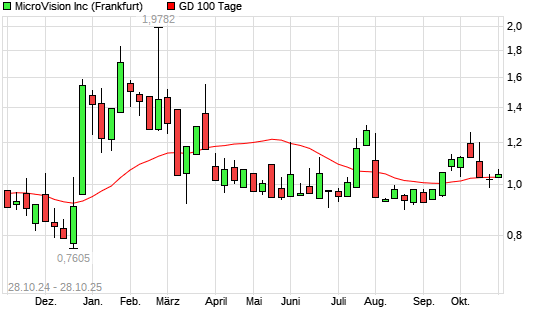 Mit dem Anstieg auf 1,07 EUR hat die Microvision-Aktie am 27.10.2025 die 100-Tage-Linie nach oben gekreuzt.