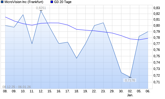 Mit dem Anstieg auf 0,78 EUR hat die Microvision-Aktie am 05.01.2026 die 20-Tage-Linie nach oben gekreuzt.