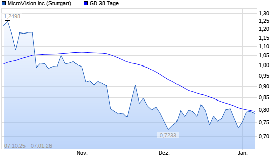 Mit dem Anstieg auf 0,79 EUR hat die Microvision-Aktie am 06.01.2026 die 38-Tage-Linie nach oben gekreuzt.