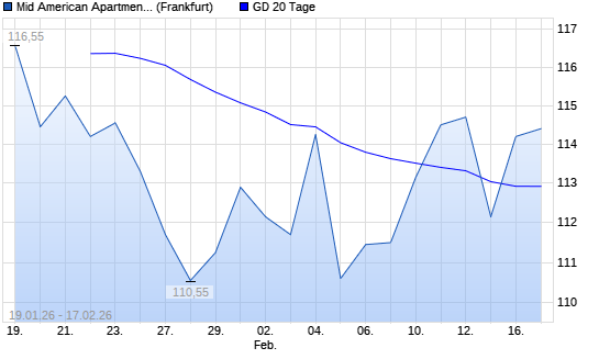 Mit dem Anstieg auf 114,20 EUR hat die Mid American Apartment-Aktie am 16.02.2026 die 20-Tage-Linie nach oben gekreuzt.