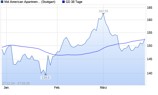 Mit dem Anstieg auf 152,60 EUR hat die Mid American Apartment-Aktie am 26.03.2025 die 38-Tage-Linie nach oben gekreuzt.