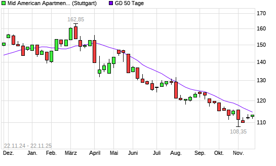 Mit dem Anstieg auf 115,90 EUR hat die Mid American Apartment-Aktie am 21.11.2025 die 50-Tage-Linie nach oben gekreuzt.
