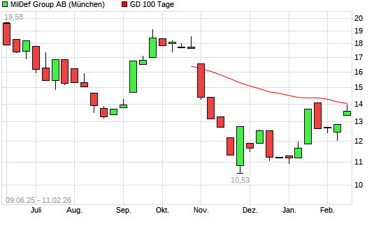 Mit dem Anstieg auf 13,97 EUR hat die MilDef Group-Aktie am 10.02.2026 die 100-Tage-Linie nach oben gekreuzt.