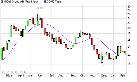Mit dem Anstieg auf 12,70 EUR hat die MilDef Group-Aktie am 05.02.2026 die 50-Tage-Linie nach oben gekreuzt.