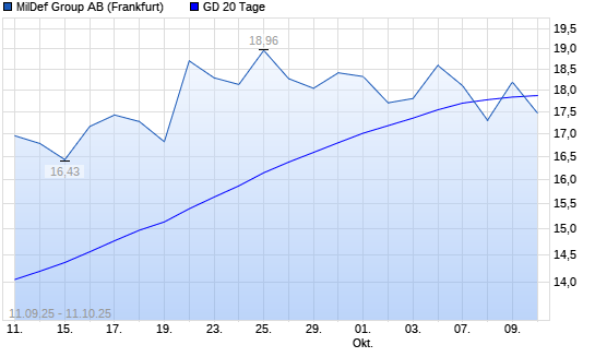 Mit dem Rücksetzer auf 17,47 EUR hat die MilDef Group-Aktie am 10.10.2025 die 20-Tage-Linie nach unten gekreuzt.