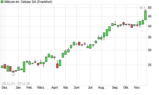 Mit dem Anstieg auf 47,00 EUR hat die Millicom-Aktie (ISIN LU0038705702) am 19.11.2025 ein neues 5-Jahres-Hoch erreicht und damit den Kurs vom 18.11.2025 eingestellt.