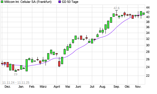 Mit dem Anstieg auf 41,60 EUR hat die Millicom-Aktie am 10.11.2025 die 50-Tage-Linie nach oben gekreuzt.