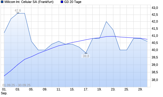 Mit dem Rücksetzer auf 40,60 EUR hat die Millicom-Aktie am 29.09.2025 die 20-Tage-Linie nach unten gekreuzt.