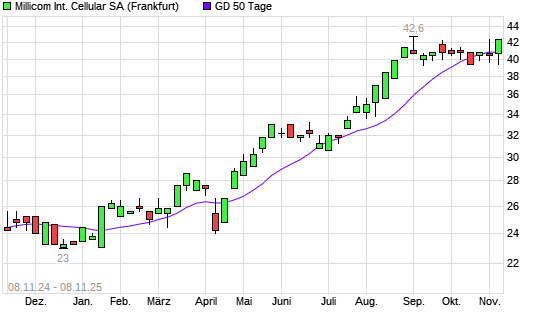 Mit dem Rücksetzer auf 40,40 EUR hat die Millicom-Aktie am 07.11.2025 die 50-Tage-Linie nach unten gekreuzt.