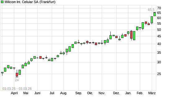 Mit dem Anstieg auf 63,00 EUR hat die Millicom-Aktie (ISIN LU0038705702) am 02.03.2026 ein neues 10-Jahres-Hoch erreicht und damit den Kurs vom 27.02.2026 eingestellt.Die ...weiterlesen