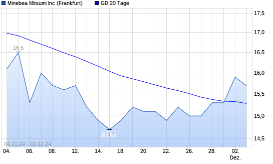 Mit dem Anstieg auf 15,90 EUR hat die Minebea Mitsumi-Aktie am 02.12.2024 die 20-Tage-Linie nach oben gekreuzt.