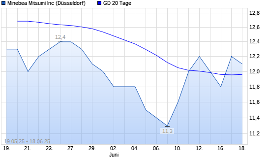 Mit dem Anstieg auf 12,30 EUR hat die Minebea Mitsumi-Aktie am 17.06.2025 die 20-Tage-Linie nach oben gekreuzt.